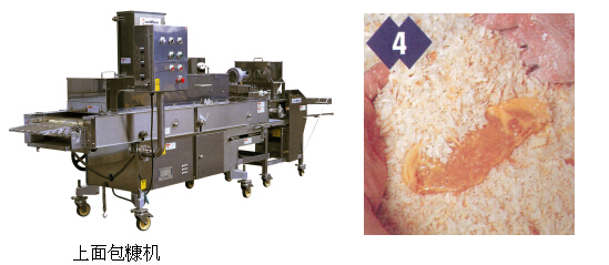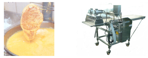 ·油炸時面包糠的水份和油相互互換,變成發脆的結果,油炸至上色的狀況。